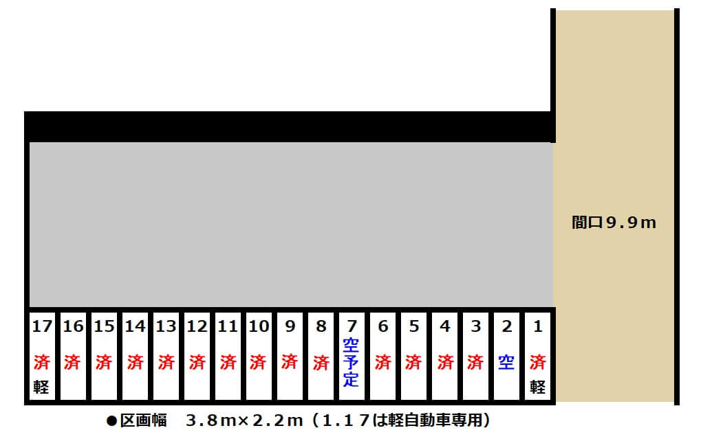 【区画幅】:3.8m×2.2m