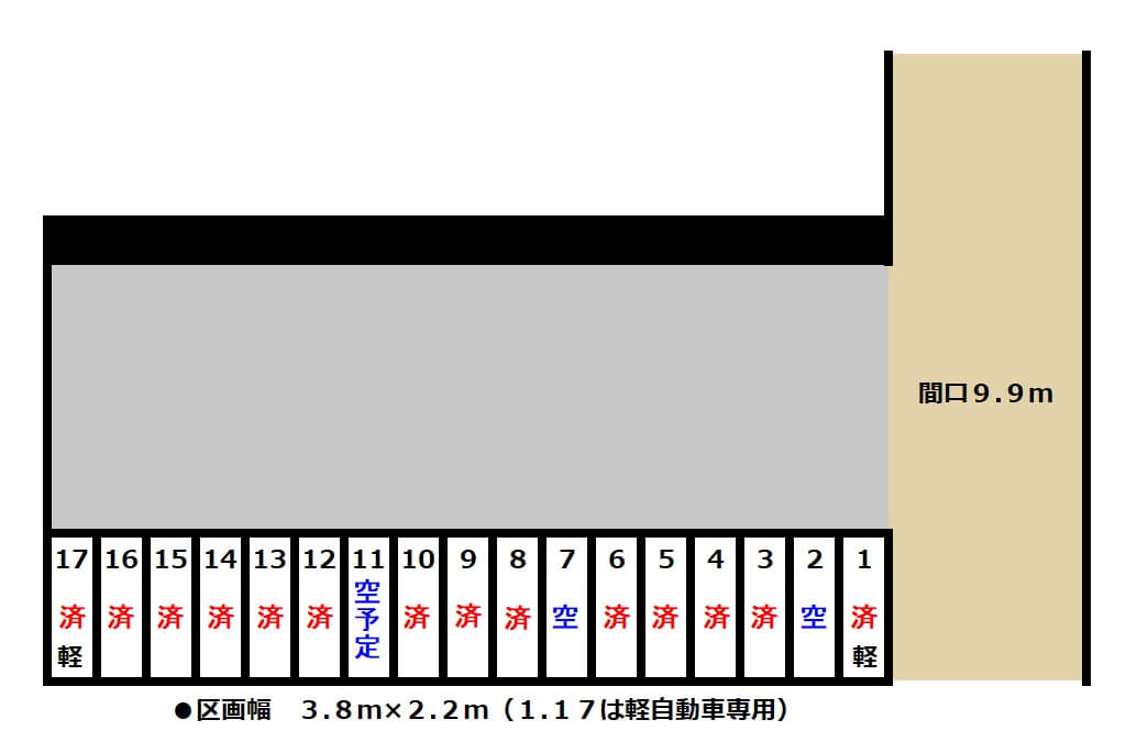 区画1:月額 11,000円(税込)、その他区画:月額 12,000円(税込)
